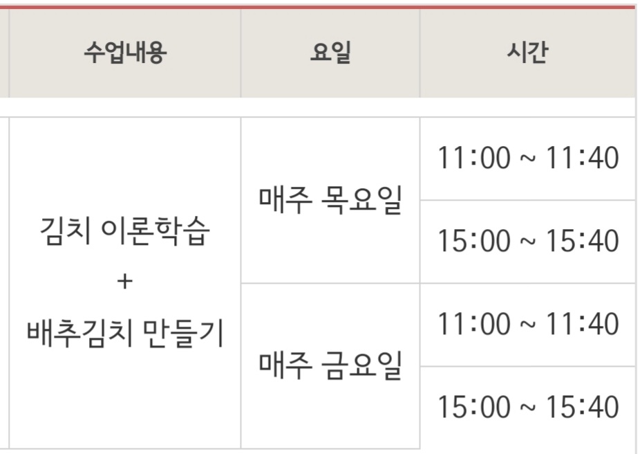 4) 수업에 참여하는 어린이는 앞치마, 김치를 버무릴 쟁반, 김치통(약 2.5L)을 준비해주세요.