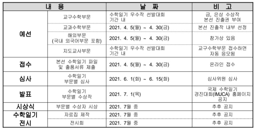 - 교구수학부문 : 2020년 1월 ~ 2021년 3월 수학일기 우수작 선발대회