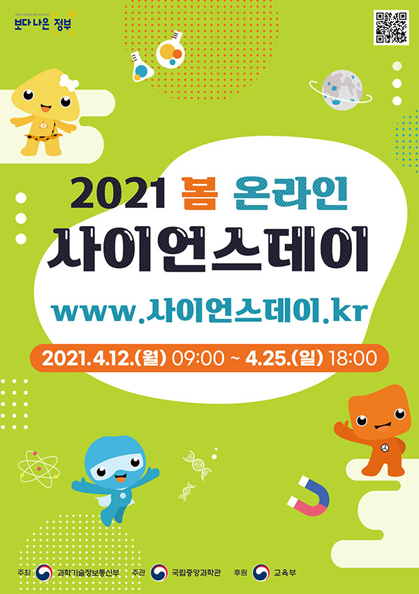 지난해, 코로나19로 인해 모두가 힘든 시기였지만 온라인 사이언스데이 개최를 통해 전국에서 26만 여 명이라는 청소년 등 많은 분들에게 볼거리와 배움거리를 주었던 만큼 올해에도 전용 온라인 참여 행사장(www.사이언스데이.kr)을 운영하여, 여러분과 함께 지금의 힘든 이러한 시기를 극복할 수 있도록 다시 한번 준비하였으니 여러분께서는 맘껏 즐겨주시기 바랍니다.