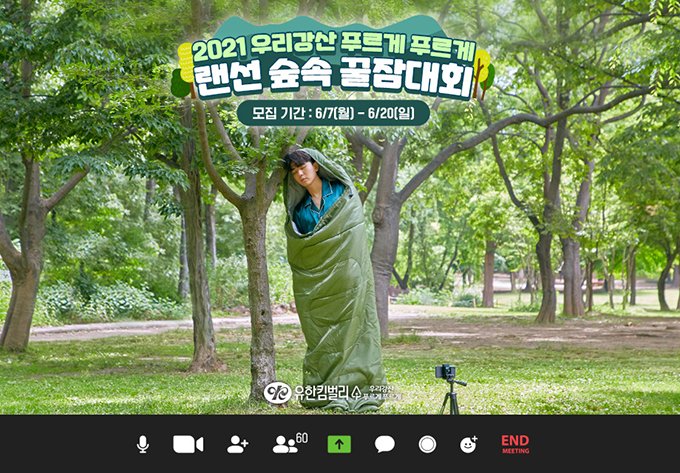 2021 우리강산 푸르게 푸르게 랜선 숲속 꿀잠대회 참가자를 모집합니다 :D ⭐ 신청기간 : 6/7(월) - 6/20(일) ⭐ 발표 : 6/22(화) ⭐ 대회일시 : 7/3 (토) ⭐ 대회장소 : 화상회의 플랫폼 ZOOM 참여 ⭐참가혜