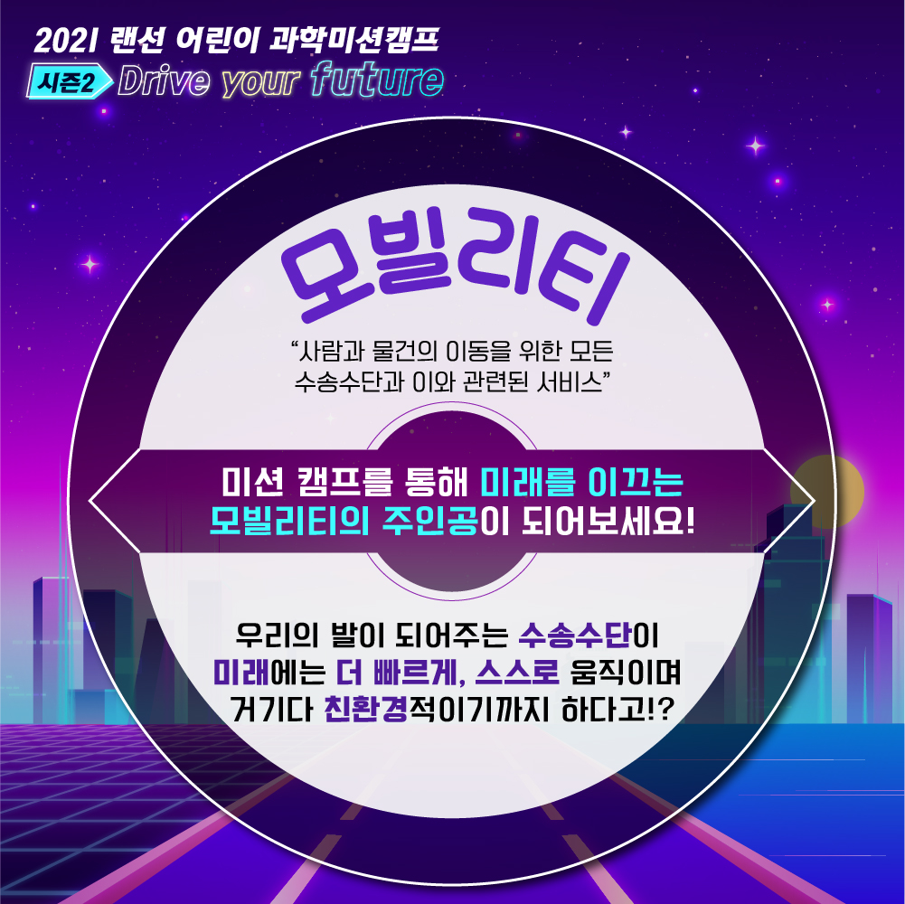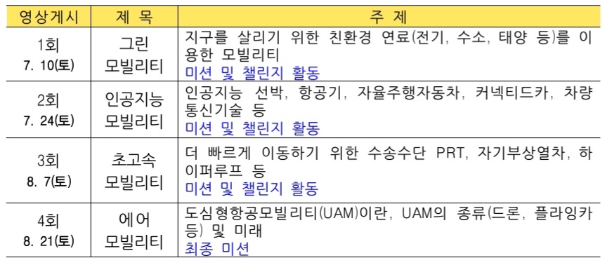 7월10일 시작되는 '시즌2' 에서는 미래에 사람과 물건의 이동을 위한 모든 수송수단과 그와 관련된 서비스인 “미래 모빌리티”에 대해 알아봅니다.