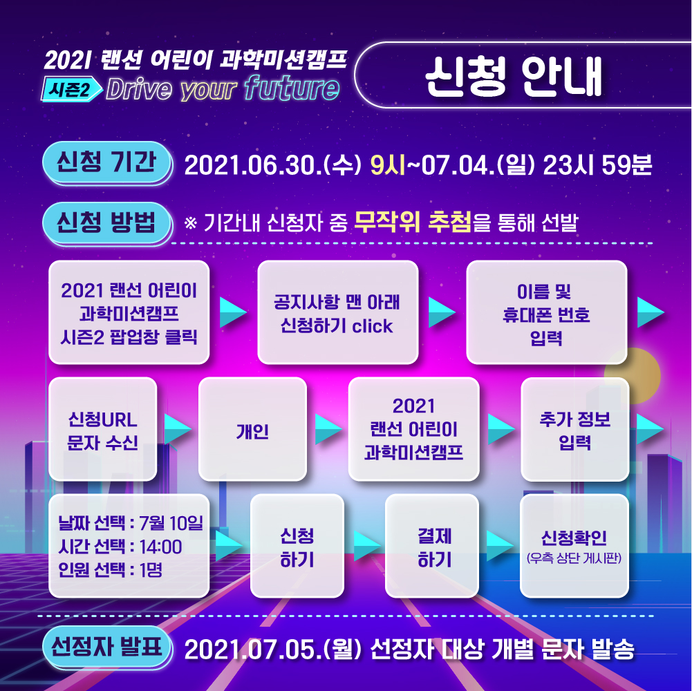 선정자 발표 : 2021년 7월 5일(월) / 선정자 대상 개별 문자 발송 예정