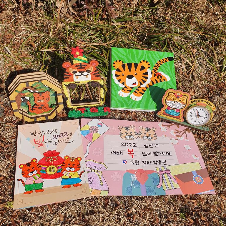 호랑이 연하장 2매 + 호랑이 까치 장식 만들기 1개 + 랜덤 1종(호랑이 액자/시계/유화 中 1개)