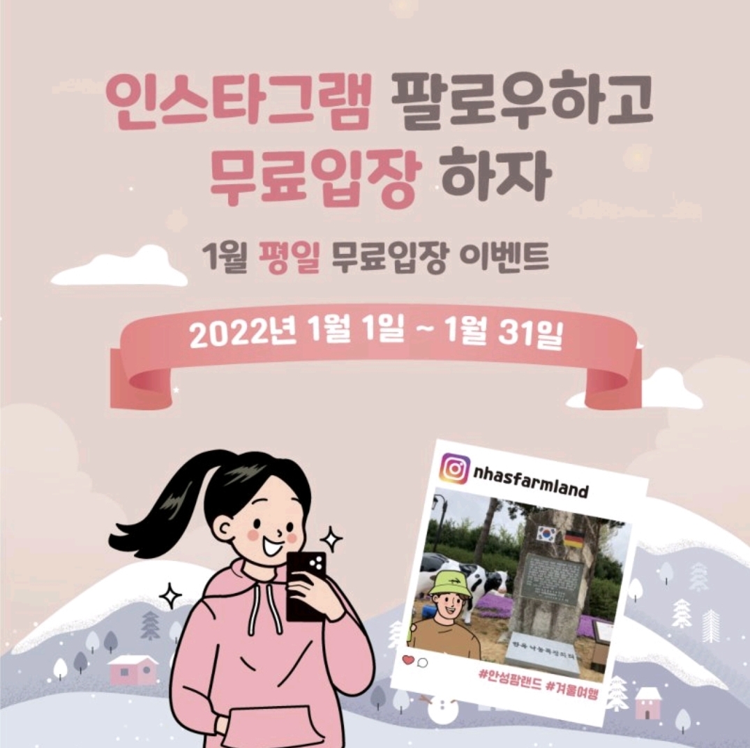 2022년 1월 평일엔 안성팜랜드 인스타그램 팔로우하고 무료입장해요!