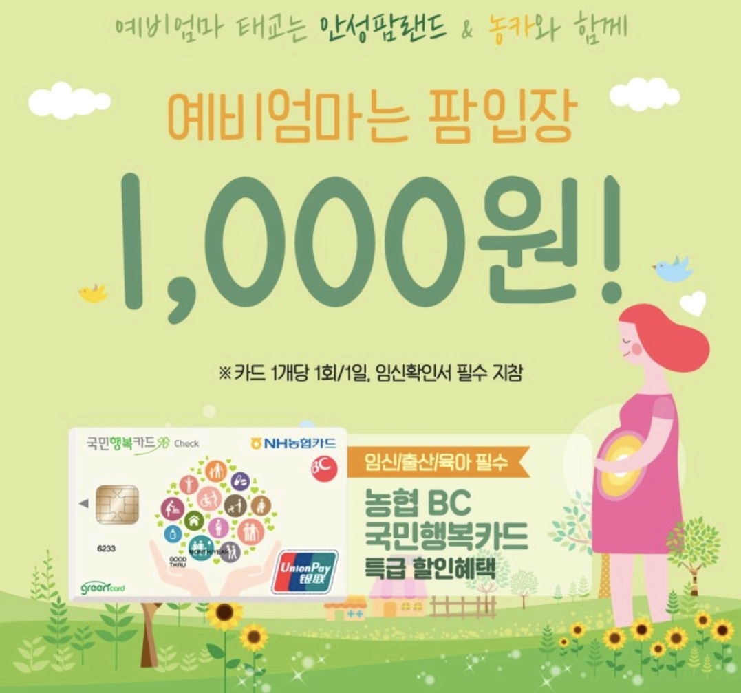 예비엄마 팜입장 1,000원 결제 시 '농협 국민행복카드' 로만 구매 가능!