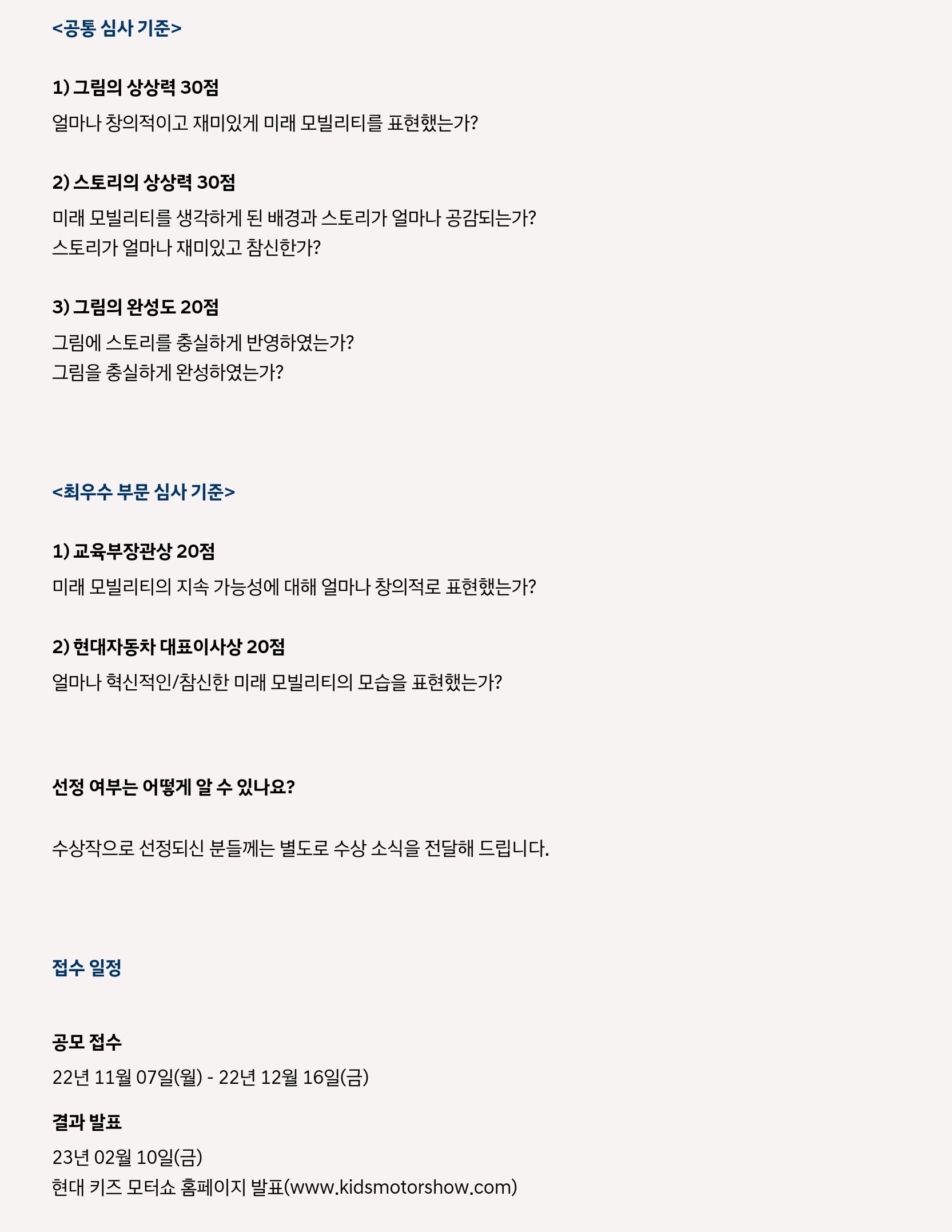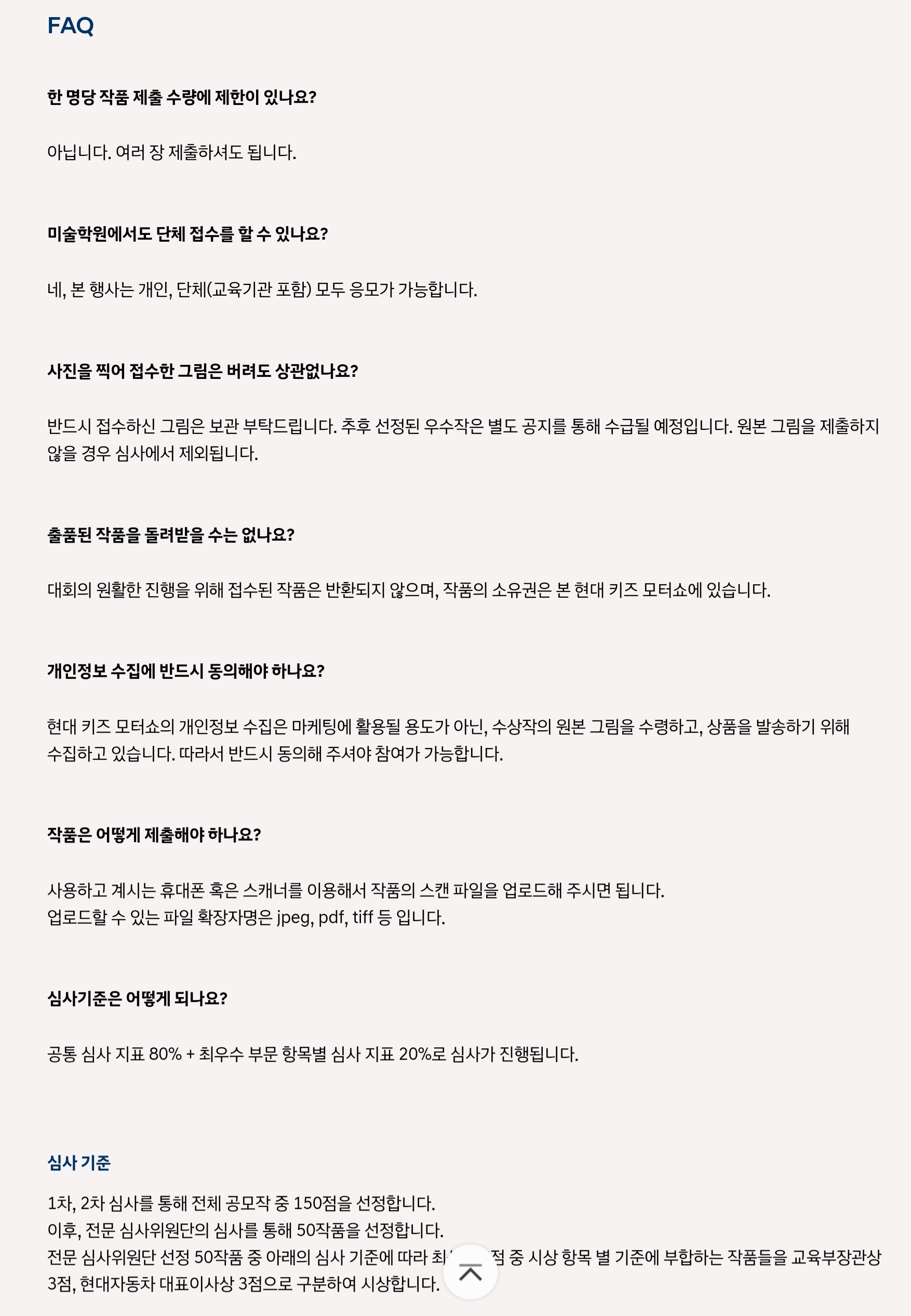 그림과 스토리를 모두 스캔하여 현대 키즈 모터쇼 홈페이지(www.kidsmotorshow.com)를 통해 접수하시면 됩니다. 단체접수는 10인 이상부터 가능합니다.