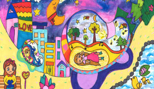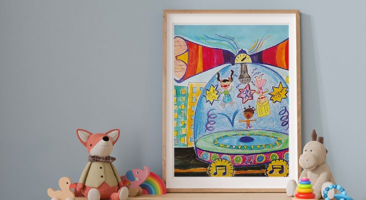 그림을 그린 아이의 상상 스토리와 함께 배경을 활용하여 상상의 공간을 표현해 주세요.