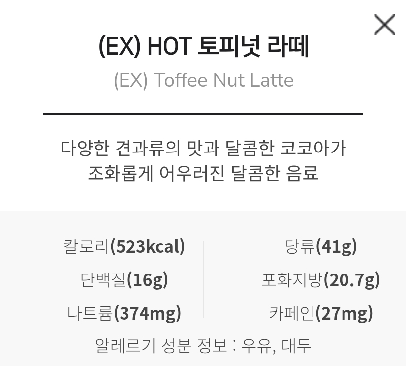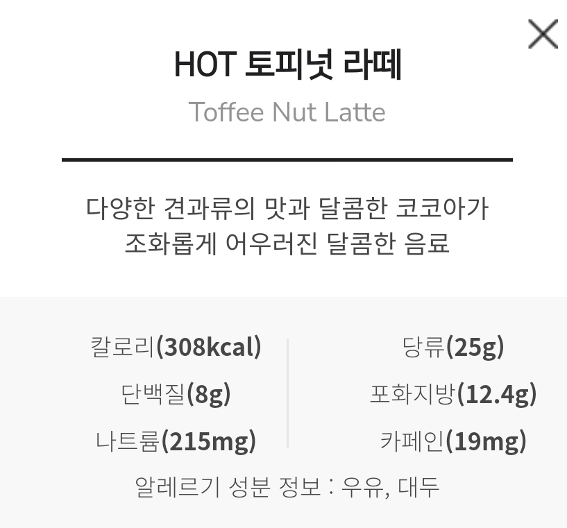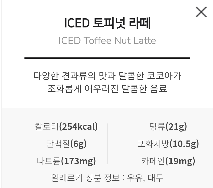 그래도 반성하며 더 줄이려고 샷이 안들어간다고들었던 이디야 토피넛라떼를 주문해놓고 검색해봤더니