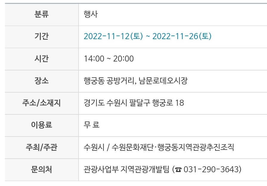 행사장소 : 경기도 수원시 팔달구 행궁로 18, 행궁동 아랫마을 (행궁동 공방거리, 남문로데오시장)
