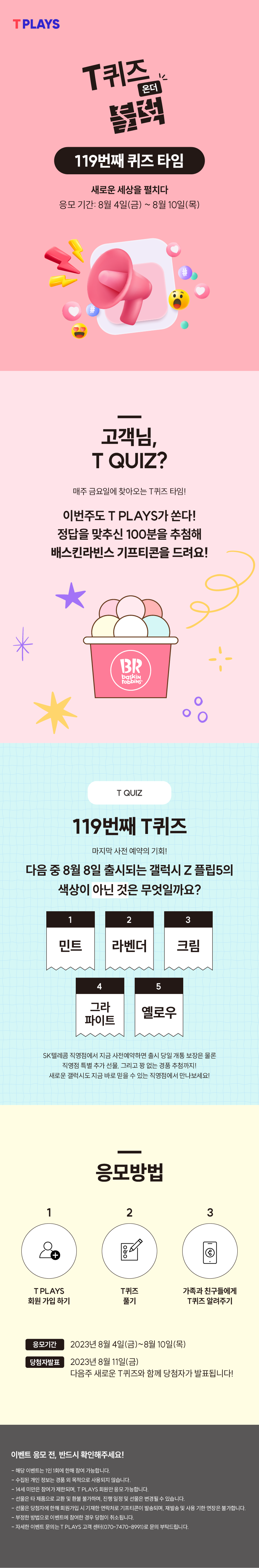 발표 8월 11일 금요일 / 추첨 베라 기프티콘 100명