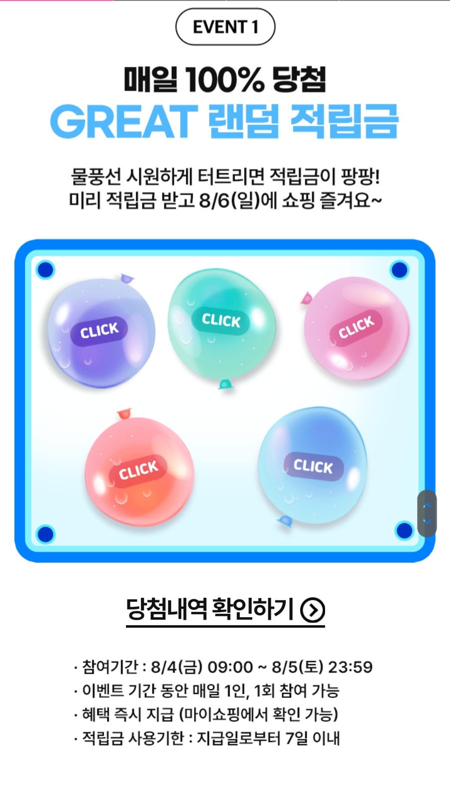 카테고리 없음 앱테크. GS shop 풍선터트리고 적립금 받기 by 노랑킹콩 2023. 8. 4. https://event.gsshop.com/event/mc/great/pre THE GREAT 썬데이[THE GREAT 썬데이] 100% 당첨 이벤트event.gsshop.com 공유하기 게시글 관리 노랑킹콩의 여행 댓글