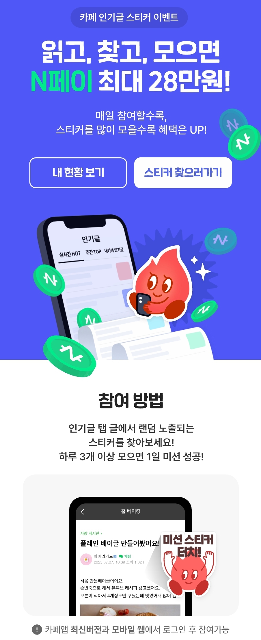 카테고리 없음 앱테크. 네이버 카페 인기글 읽고 네이버페이 받자 (~9.5) by 노랑킹콩 2023. 8. 7. https://m.cafe.naver.com/ca-fe/event/202308네이버 카페네트워크 문제로 연결되지 않습니다. 잠시 후에 다시 시도해주세요.m.cafe.naver.com 공유하기 게시글 관리 노랑킹콩의 여행 댓글