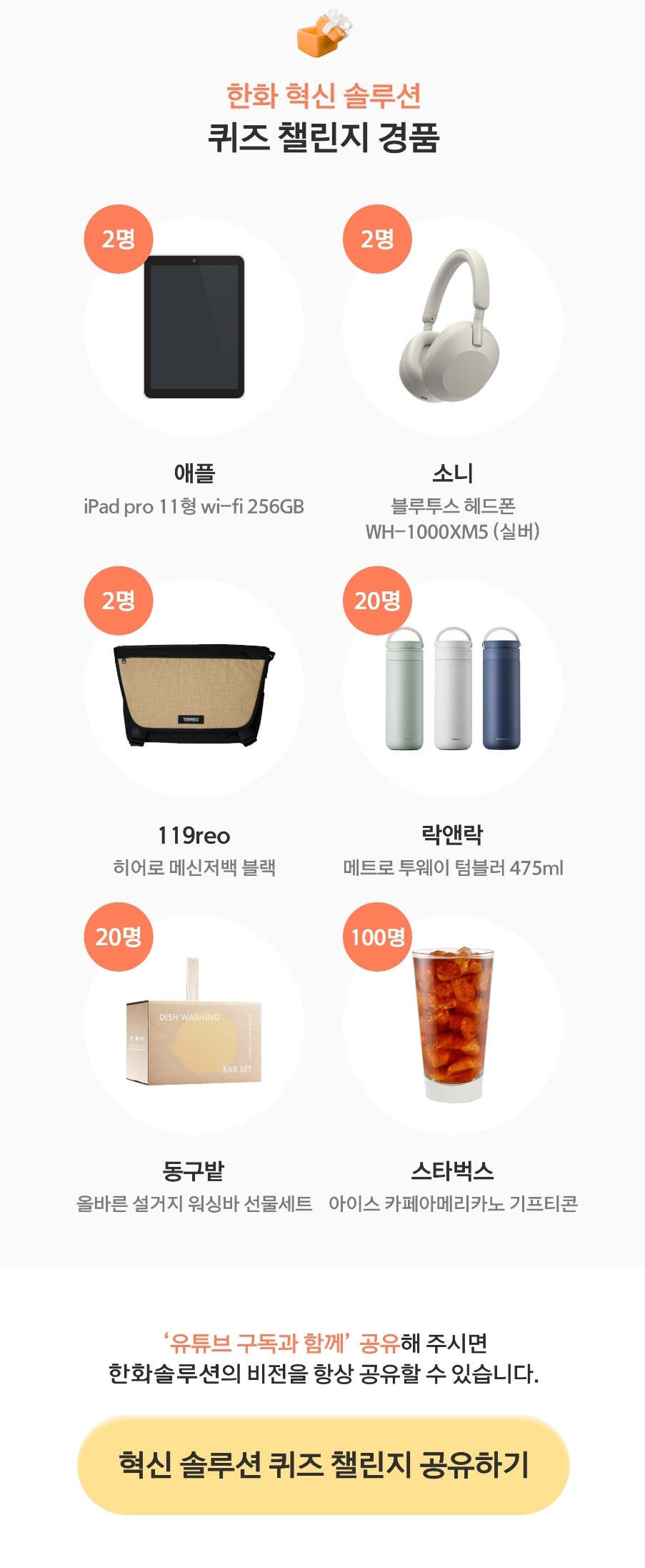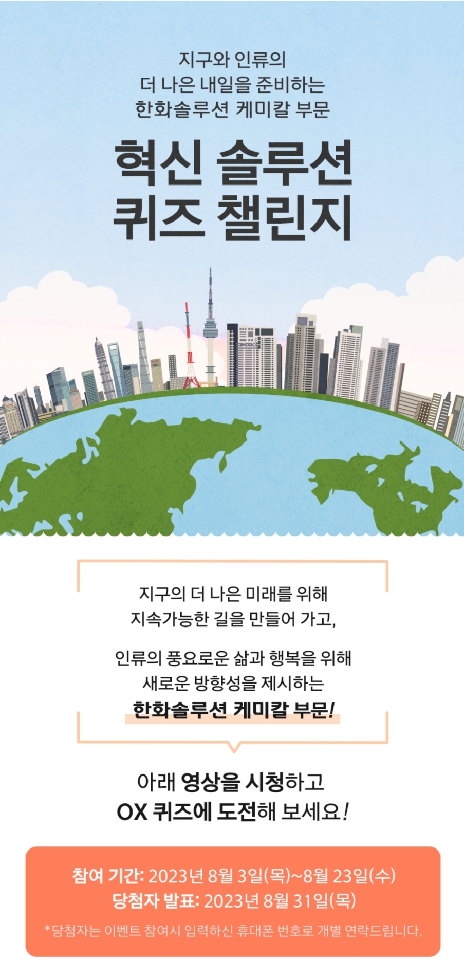카테고리 없음 앱테크. 한화솔루션 퀴즈풀고 애플패드 받자 by 노랑킹콩 2023. 8. 9. 로그인 ❌️정답은 모두 ⭕️ 쉬워요!! 8.31일에 발표 https://youtu.be/YNiXDVzRhLk https://hanwha-innovationsolutions.com/?tcode=SCOPY 한화 혁신 솔루션 퀴즈 챌린지영상을 시청하고 , OX 퀴즈에 도전해 보세요!hanwha-innovationsolutions.com 공유하기 게시글 관리 노랑킹콩의 여행 댓글