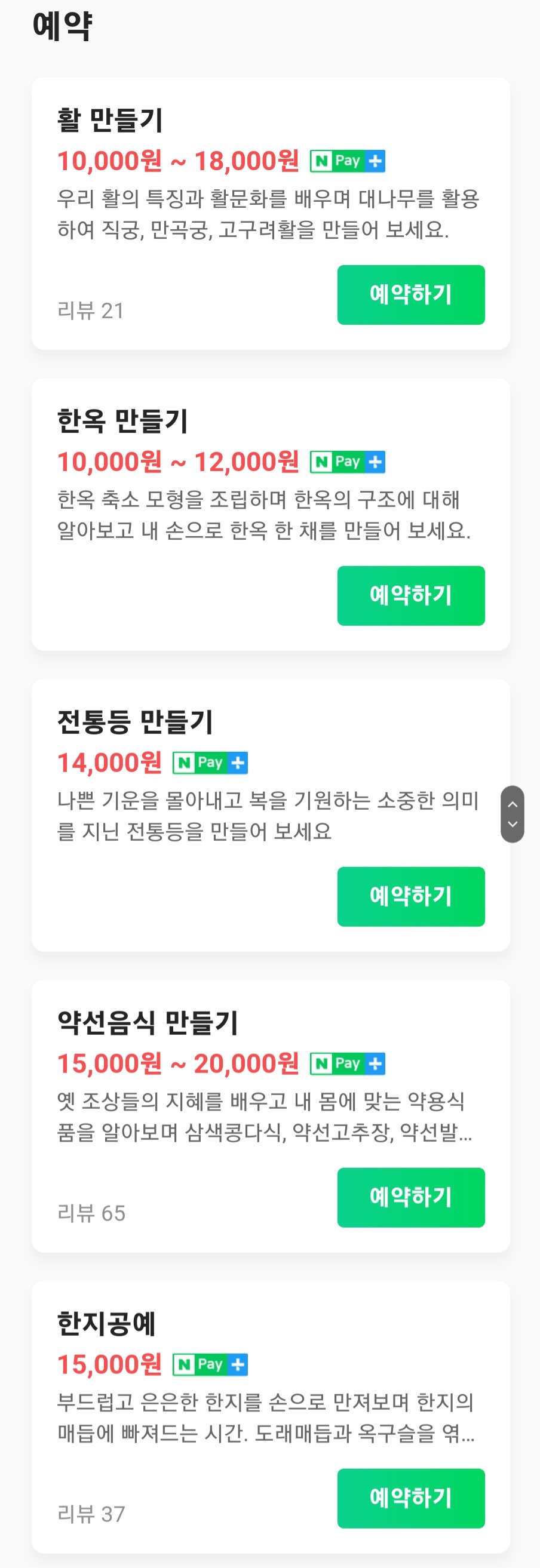 아래 링크 접속 후 전통체험프로그램 내 원하는 체험 선택하여 해당 예매처 링크 이동