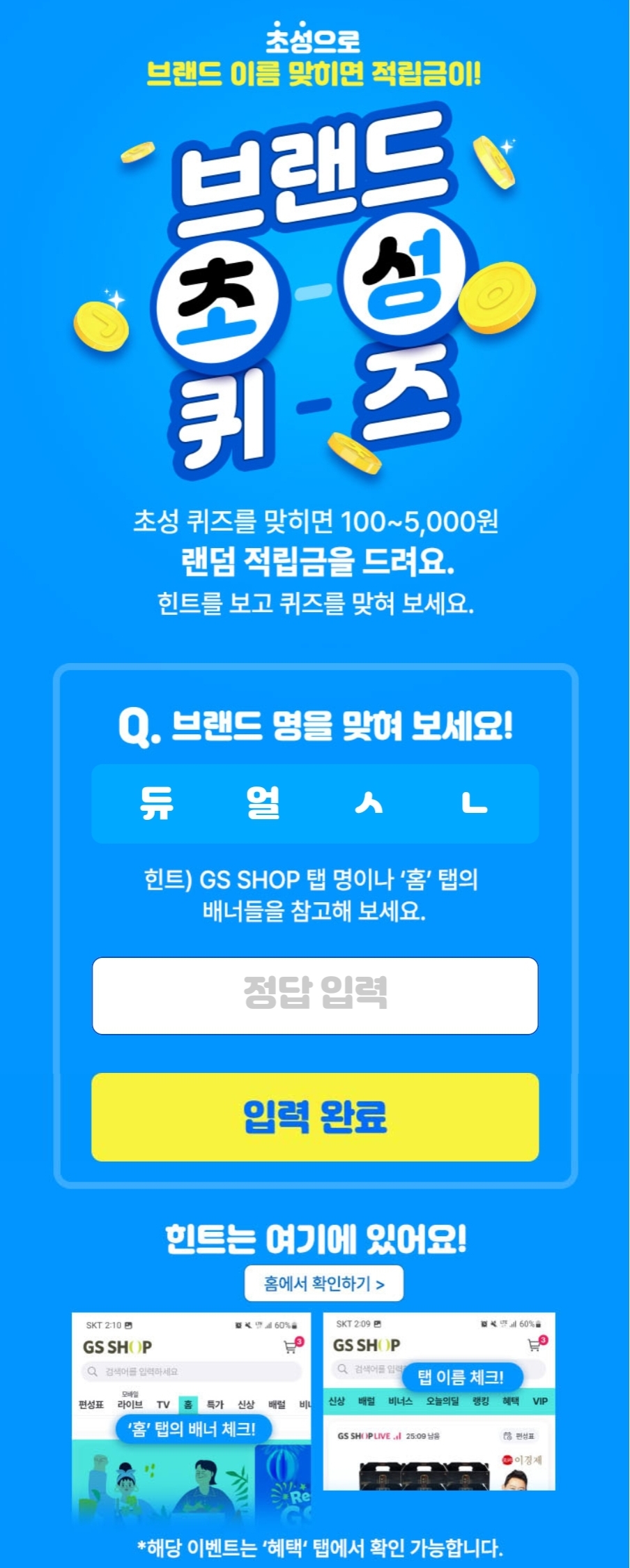 GS SHOP 초성 퀴즈 이벤트