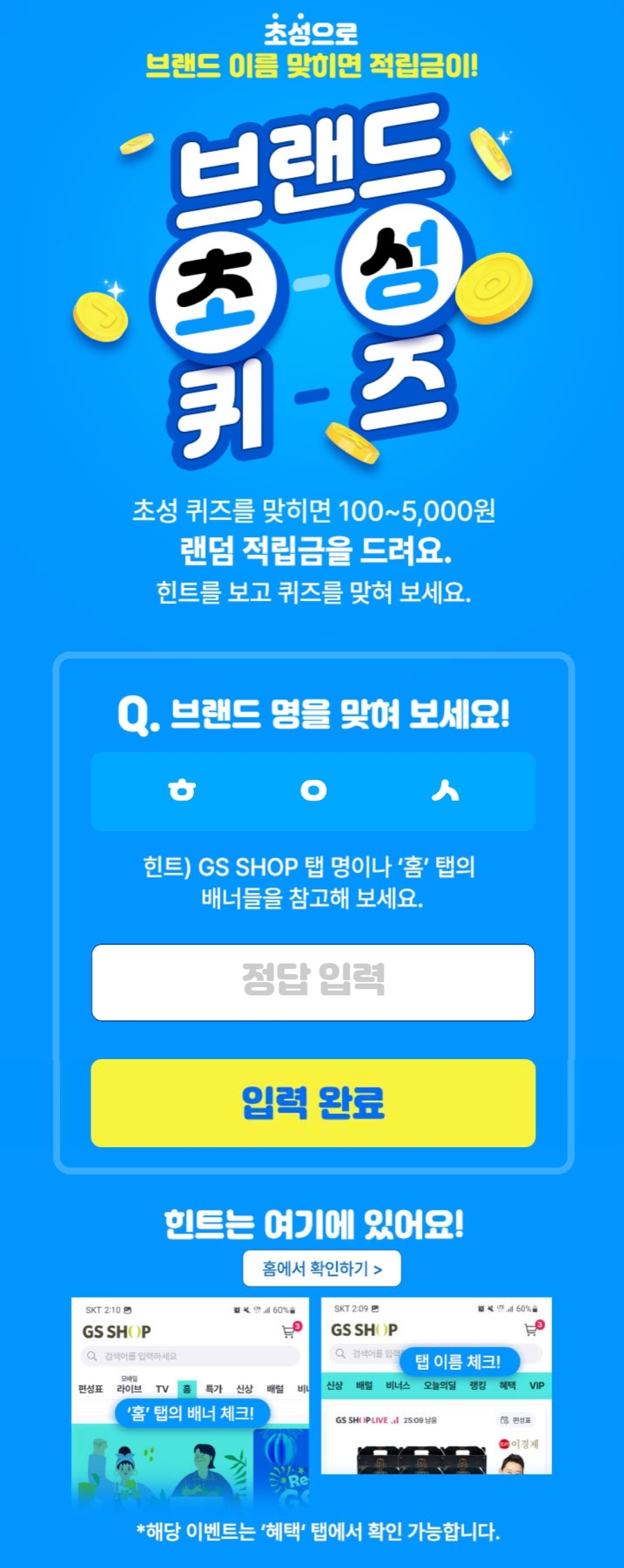 카테고리 없음 앱테크. GS SHOP 초성퀴즈 맞추고 최대 5,000포인트 받으세요 by 노랑킹콩 2023. 8. 15. 로그인⭕️정답 : 휴온스 https://event.gsshop.com/event/initial-quiz GS SHOP 초성 퀴즈 이벤트브랜드 초성퀴즈 맞히고 적립금 받아가세요!event.gsshop.com 공유하기 게시글 관리 노랑킹콩의 여행 댓글