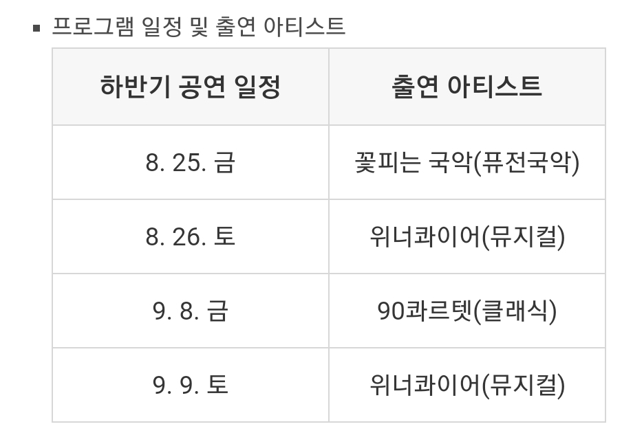 - 본 프로그램은 무대 주변에 자유롭게 서서 관람하는 ‘버스킹’ 형태의 공연으로, 사전접수 없이 누구나 자유롭게 관람할 수 있습니다.