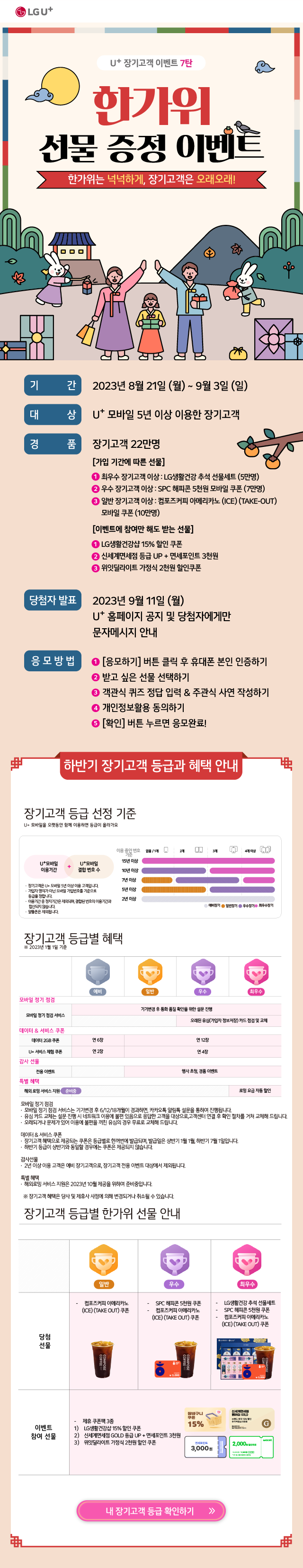 카테고리 없음 앱테크. 유플러스 5년이상 장기고객 응모하고 선물세트 받으세요 (~9.3) by 노랑킹콩 2023. 8. 22. 로그인 ⭕️유플러스 5년이상 장기고객 찾아요~~ ^ https://m.lguplus.com/benefit-event/ongoing/80928 유플러스 [U⁺ 장기고객 이벤트 7탄] 한가위 선물 증정 이벤트 < 이벤트/혜택 | LG U+[U⁺ 장기고객 이벤트 7탄] 한가위 선물 증정 이벤트을 소개합니다. 유플러스 고객만을 위한 다양한 혜택과 이벤트를 확인해보세요.www.lguplus.com 공유하기 게시글 관리 노랑킹콩의 여행 댓글