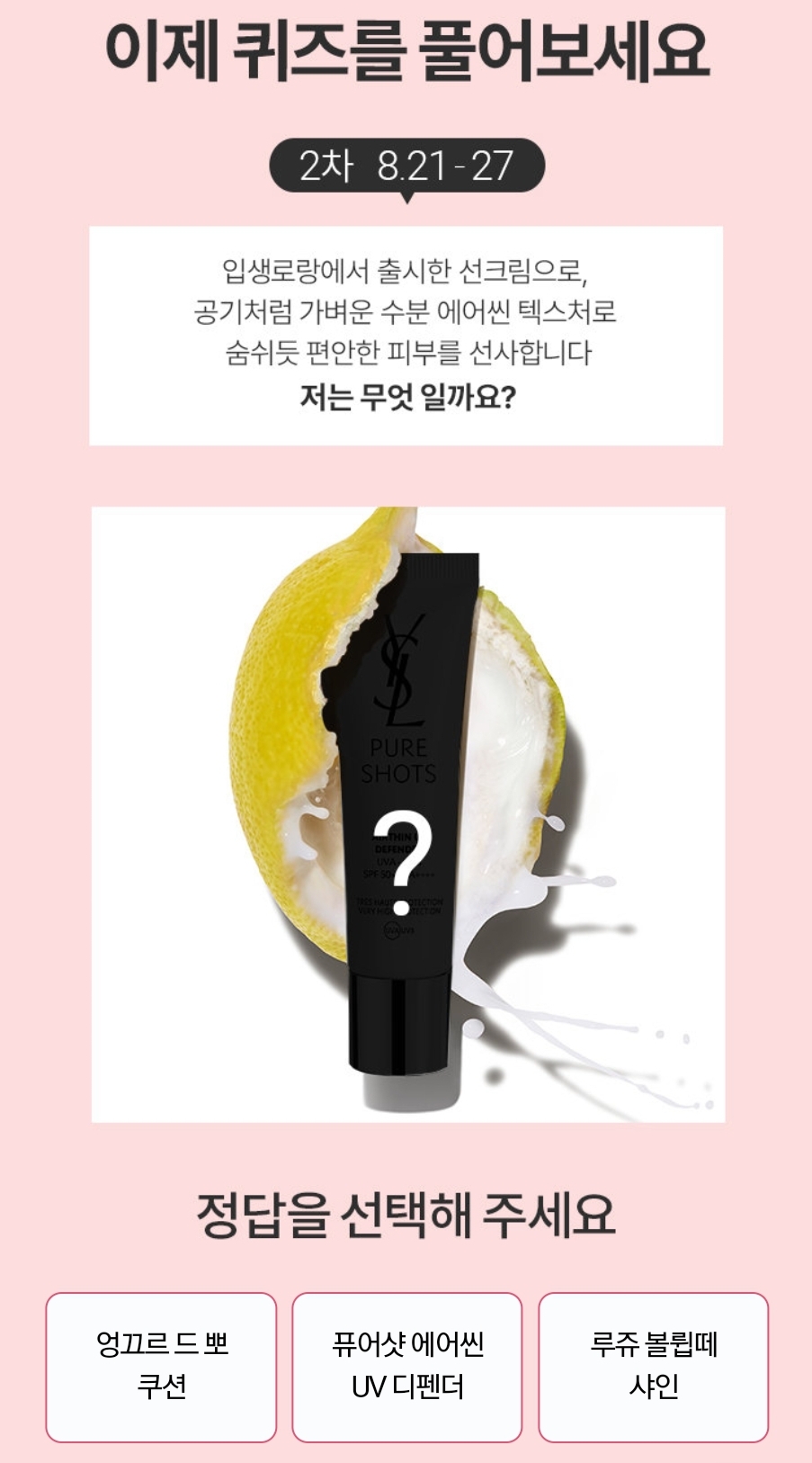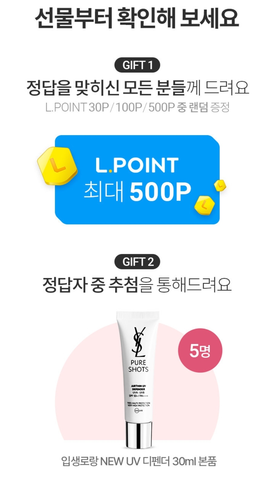 카테고리 없음 앱테크. 퀴즈풀고 최대 500포인트 랜덤 증정 by 노랑킹콩 2023. 8. 23. 로그인 ⭕️정답 : 2번 퓨어샷 에어씬 UV디펜더 https://s.lotteon.com/CVvwcWTBh 온앤더뷰티 클럽 8월 퀴즈 이벤트 : 롯데ON나에게 딱 맞는 상품을, 나에게 딱 맞는 가격으로! 쇼핑의 모든 것 LOTTE ON!www.lotteon.com 공유하기 게시글 관리 노랑킹콩의 여행 댓글