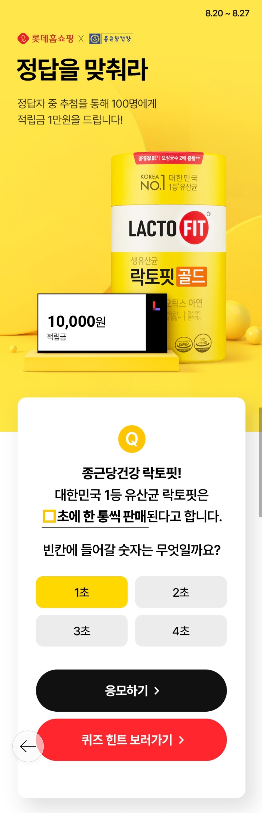 카테고리 없음 앱테크. 종근당 퀴즈 맞추고 추첨 100명 적립금 만포인트 받으세요. (~8.27) by 노랑킹콩 2023. 8. 24. 롯데홈쇼핑 로그인 ⭕️정답 : 1초 https://m.lotteimall.com/multiEvent/multiExpandedEventMain.lotte?mno=L237148 롯데홈쇼핑X종근당건강 설문투표 이벤트롯데홈쇼핑m.lotteimall.com 공유하기 게시글 관리 노랑킹콩의 여행 댓글