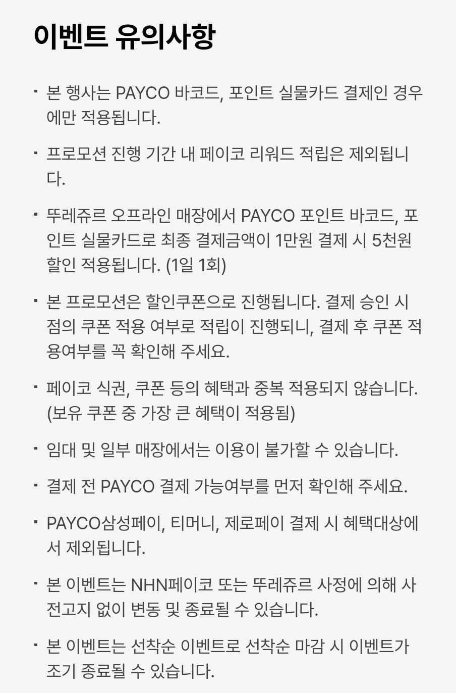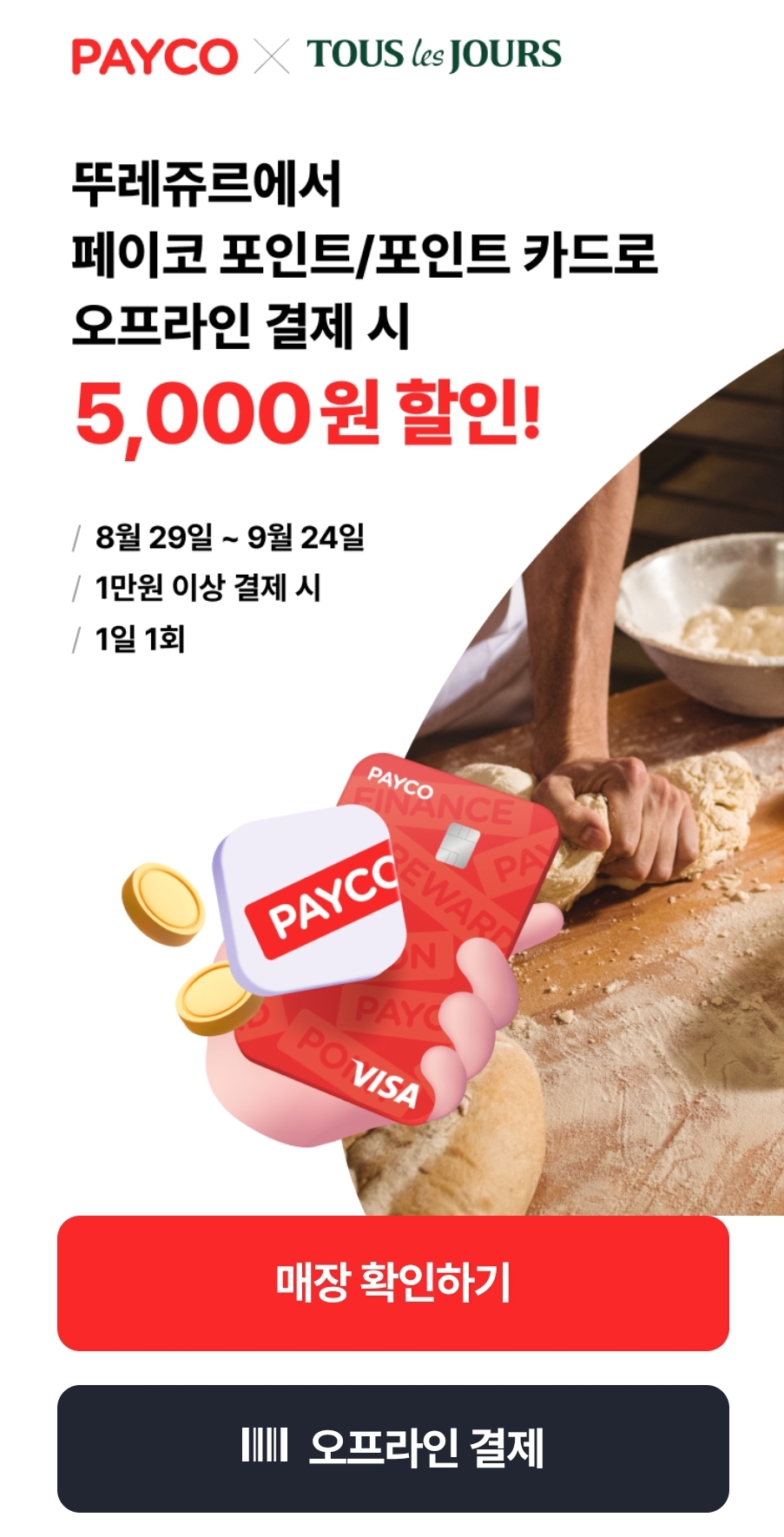 카테고리 없음 앱테크. 페이코 포인트/ 포인트 카드로 뚜레쥬르 만원 결제시 5000원 할인 (8.29~9.24) by 노랑킹콩 2023. 8. 28. 페이코 포인트/ 포인트 카드로 뚜레쥬르 오프라인 만원 이상 결제시 5000원 할인이니 혜자 이벤트에요😍조기종료 가능성 있어요!! 페이코어플 - 뚜레쥬르 검색 공유하기 게시글 관리 노랑킹콩의 여행 댓글