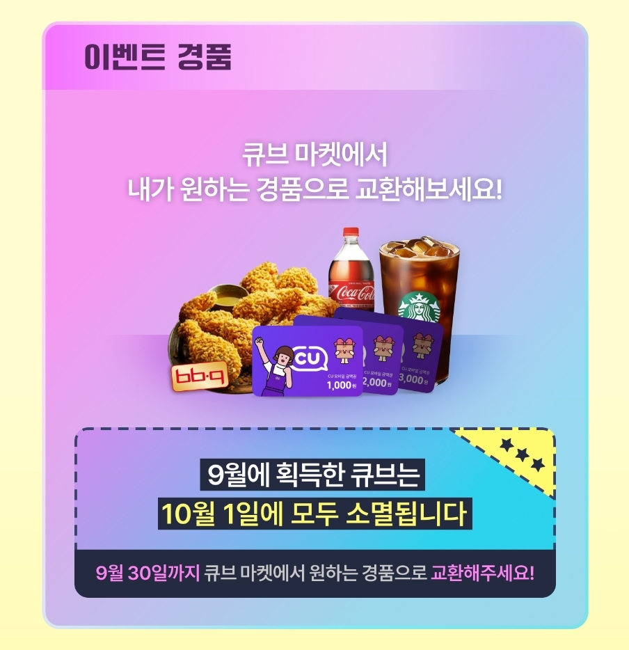 인사이드 9월 출첵 이벤트는 날마다 방문해 큐브를 얻어 경품으로 교환하는 거에요~