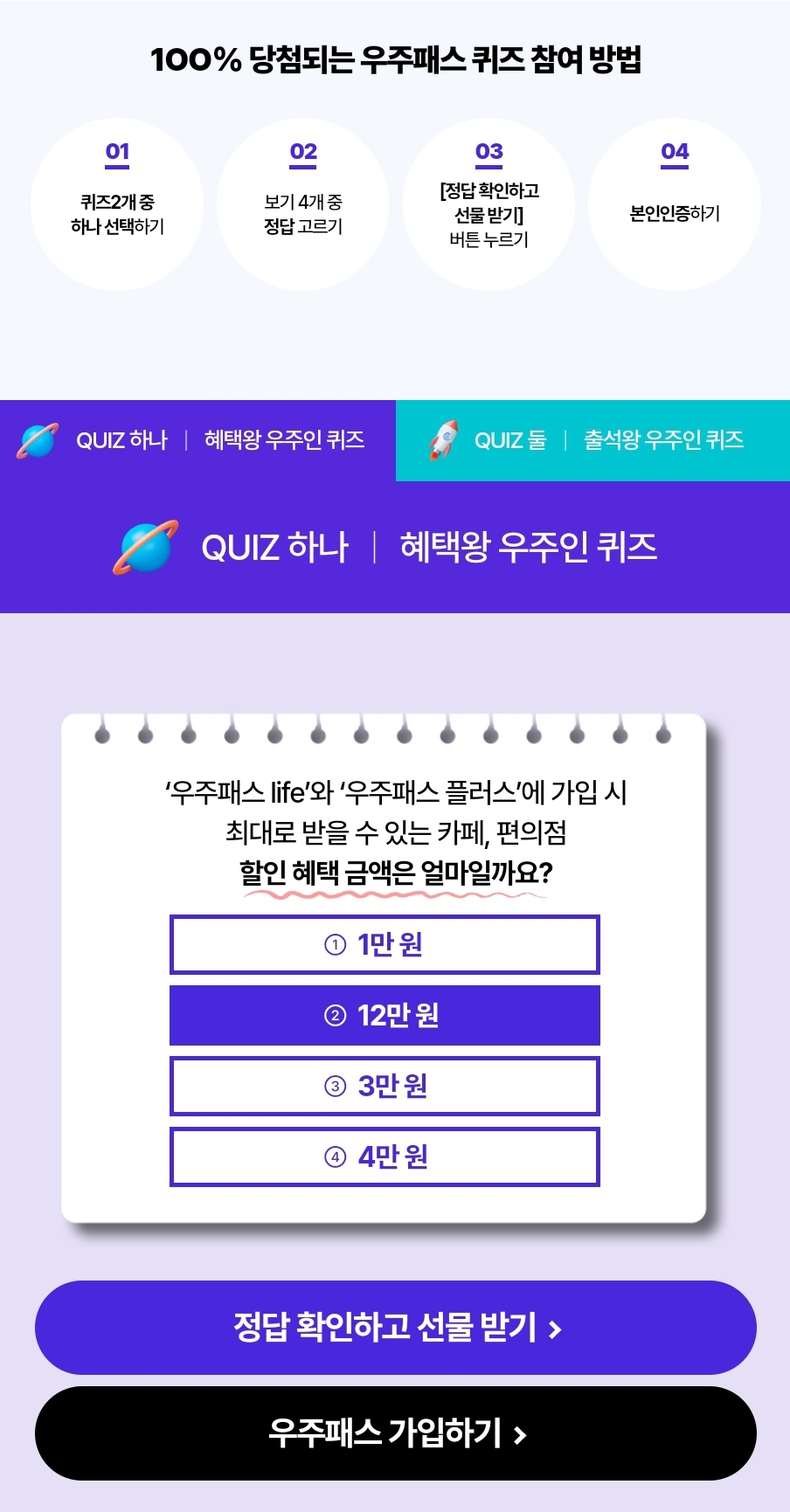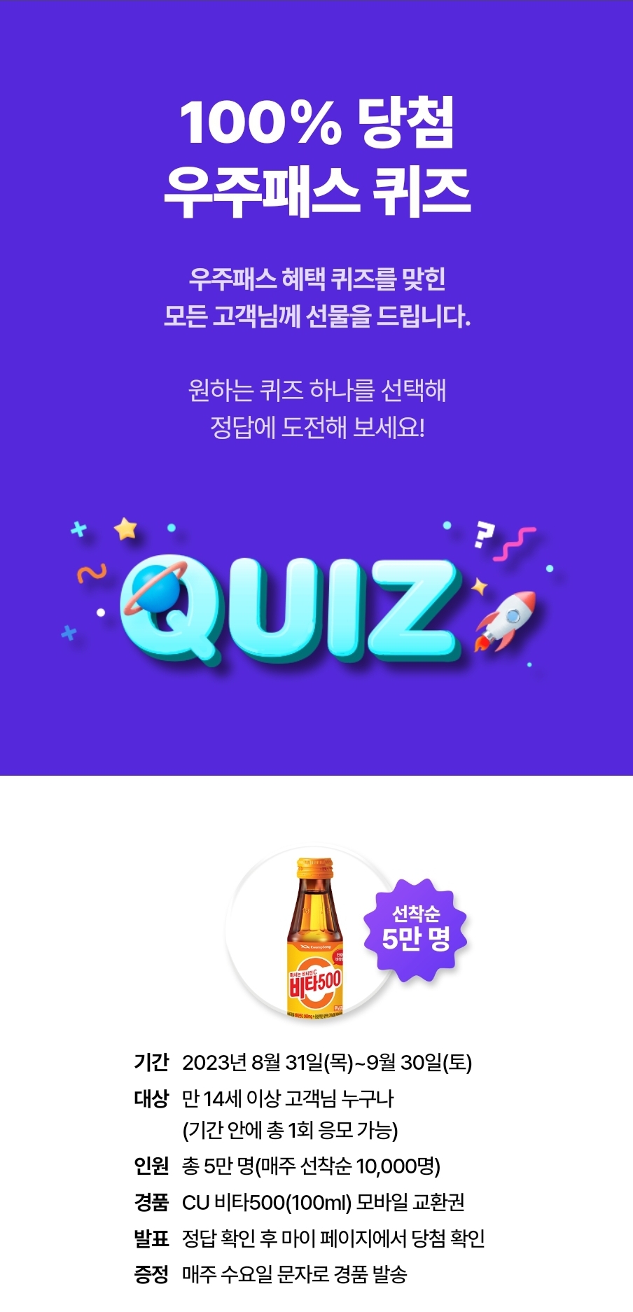 100% 당첨 퀴즈 이벤트