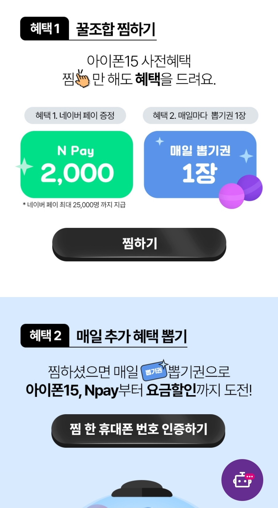 아이폰15 찜하면 네페 2000원 25000명 지급이에요!
