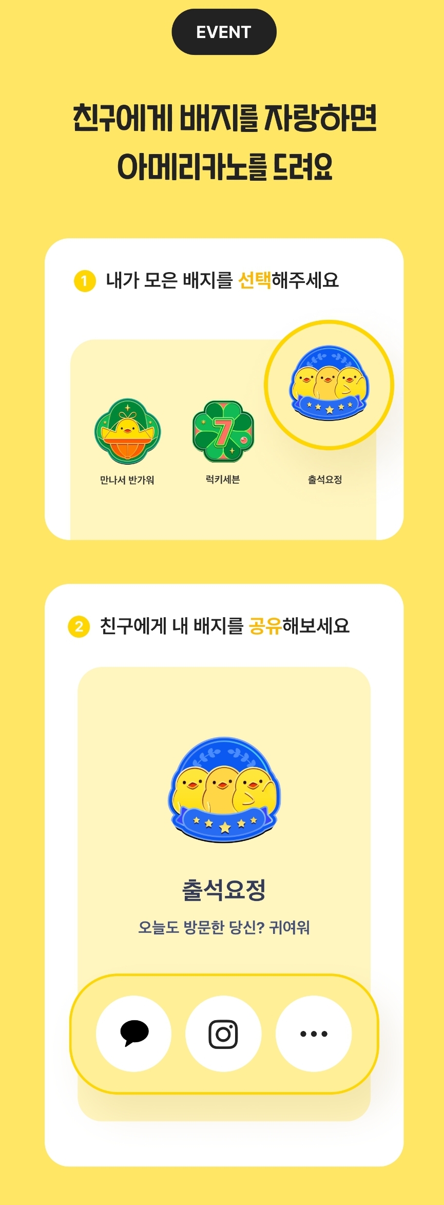 카테고리 없음 [카카오뱅크] 배지 공유하고 스벅 추첨 1000명 (~12.18) by 노랑킹콩 2023. 9. 12. 로그인 ⭕️ https://event.kakaobank.com/p/event?i=mybadge&type=list 카카오뱅크 내 배지내가 받은 배지를 자랑해보세요! #배지 공유하면 스타벅스 1천명event.kakaobank.com 공유하기 게시글 관리 노랑킹콩의 여행 댓글