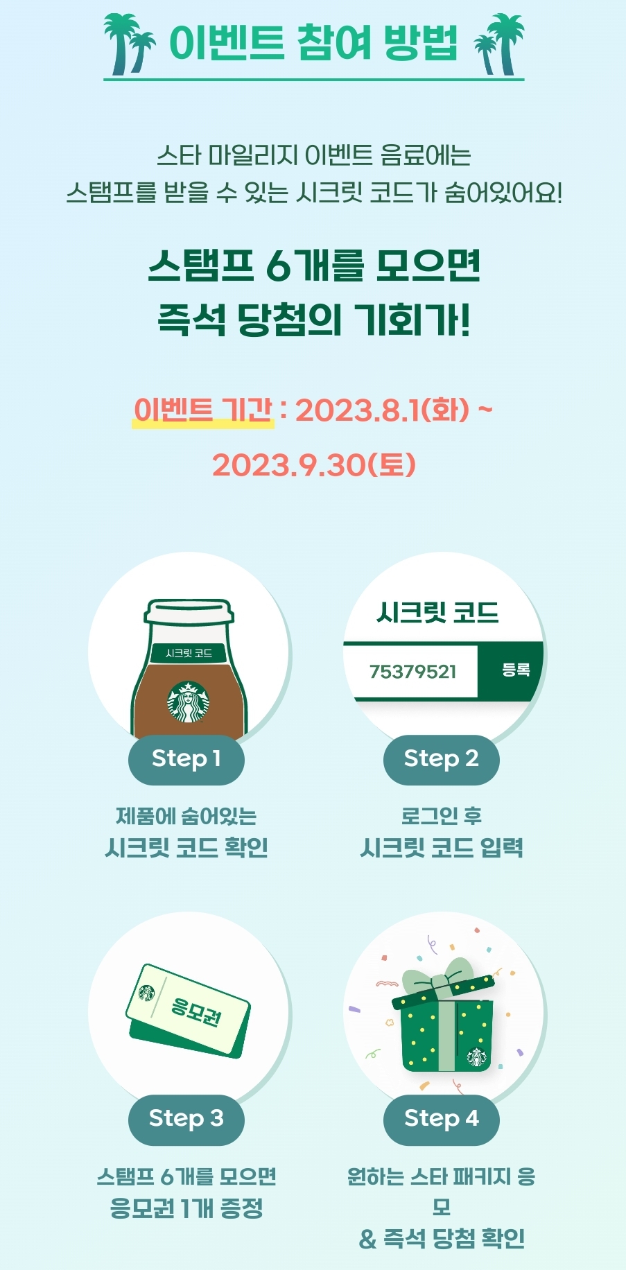 스타벅스RTD 제품 속 시크릿 코드를 모아 한정판 스타벅스 MD 받아가세요!