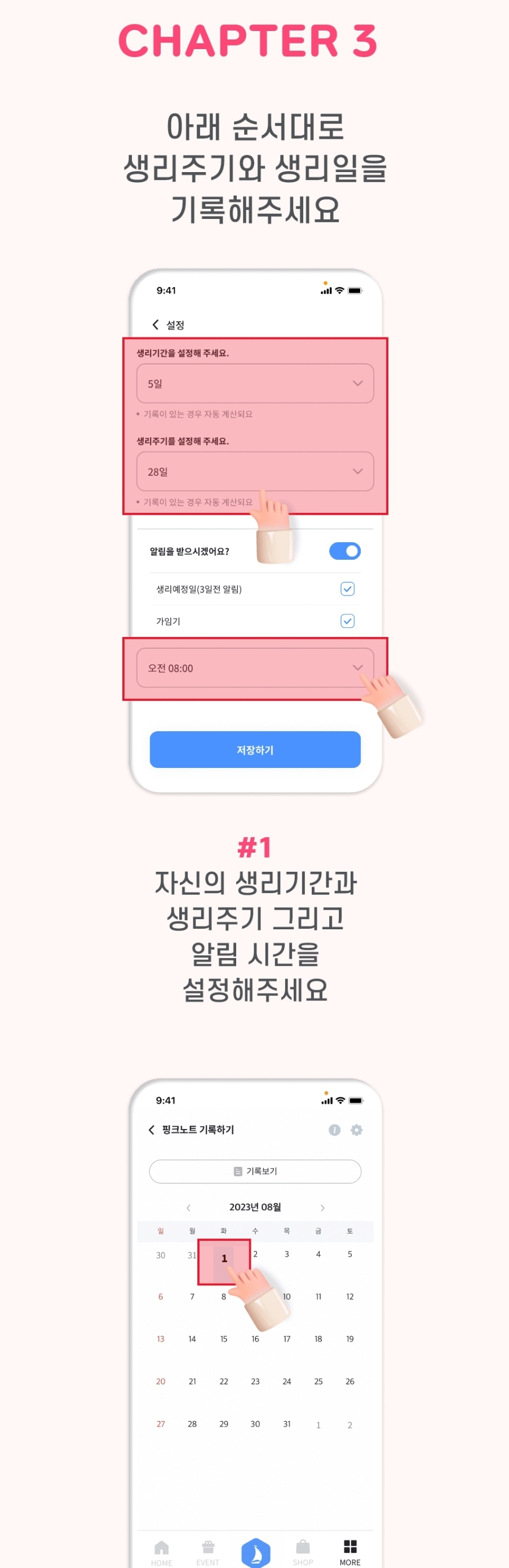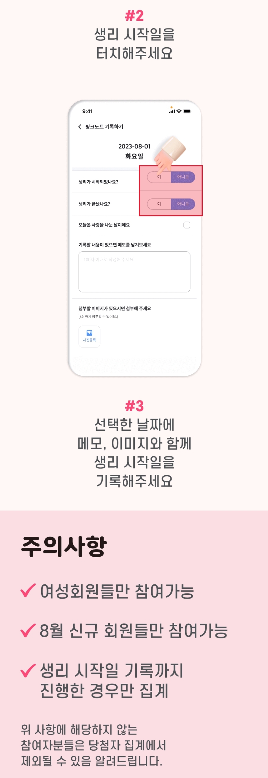 대신 아쉽게도 생리주기를 작성하는 핑크노트라 여자분들만 해당이 되신다는 점 ㅜㅡㅜ