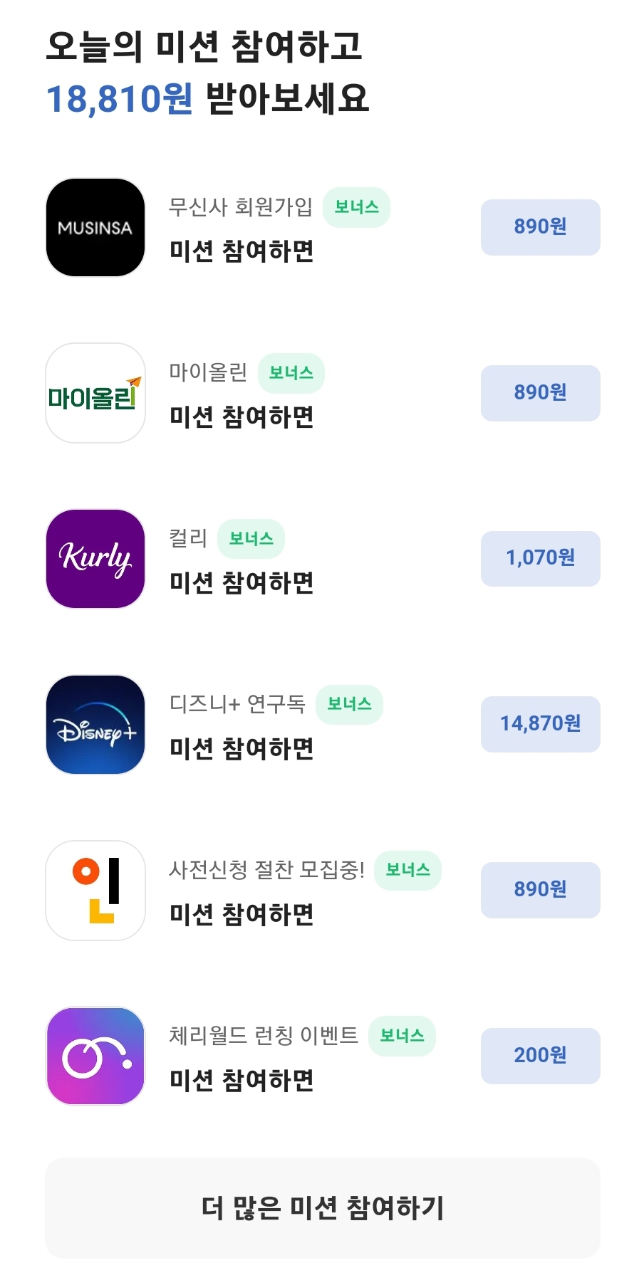 카카오뱅크 - 이벤트 - 미션 참여하고 용돈 모아봐요