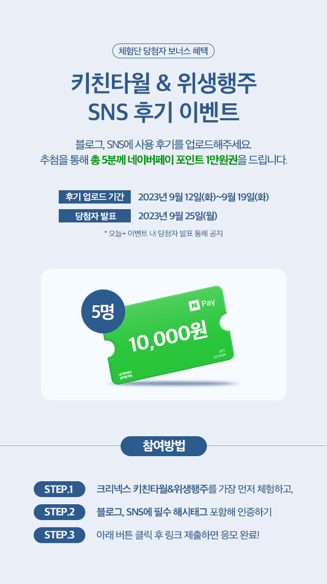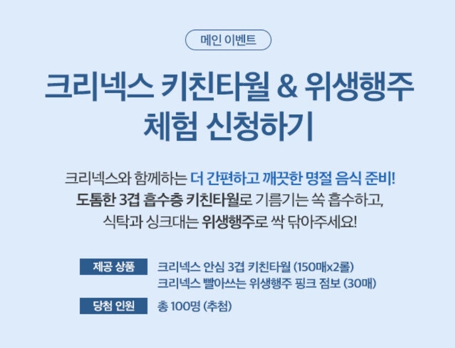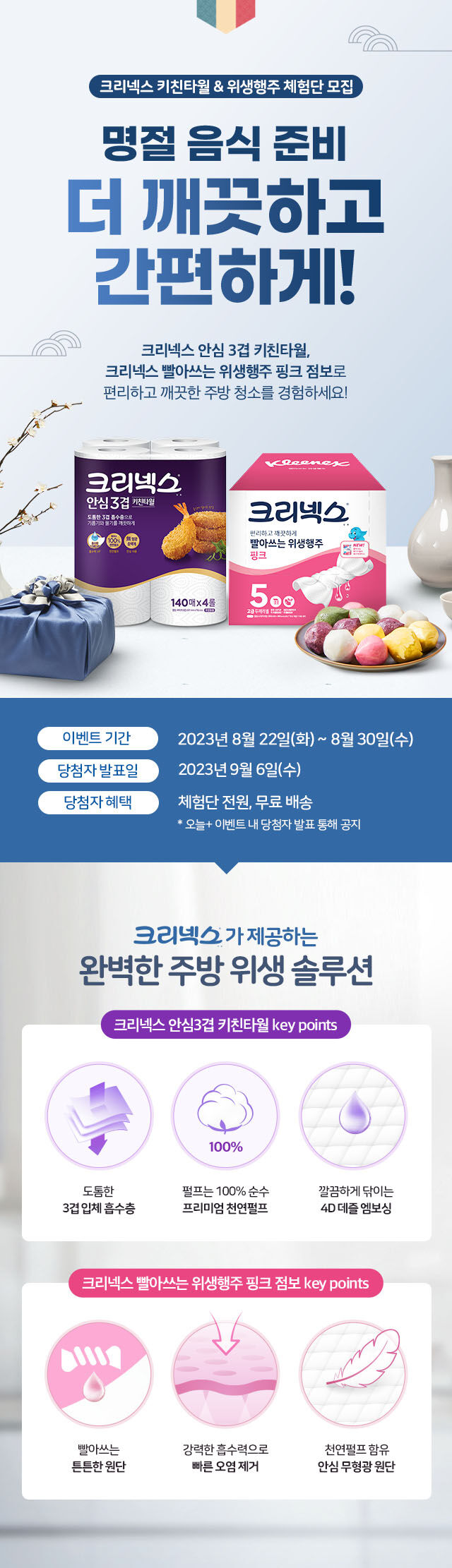오늘+이벤트 | 진행중인 이벤트 | [8월] 크리넥스 키친타월 & 위생행주 체험단 모집